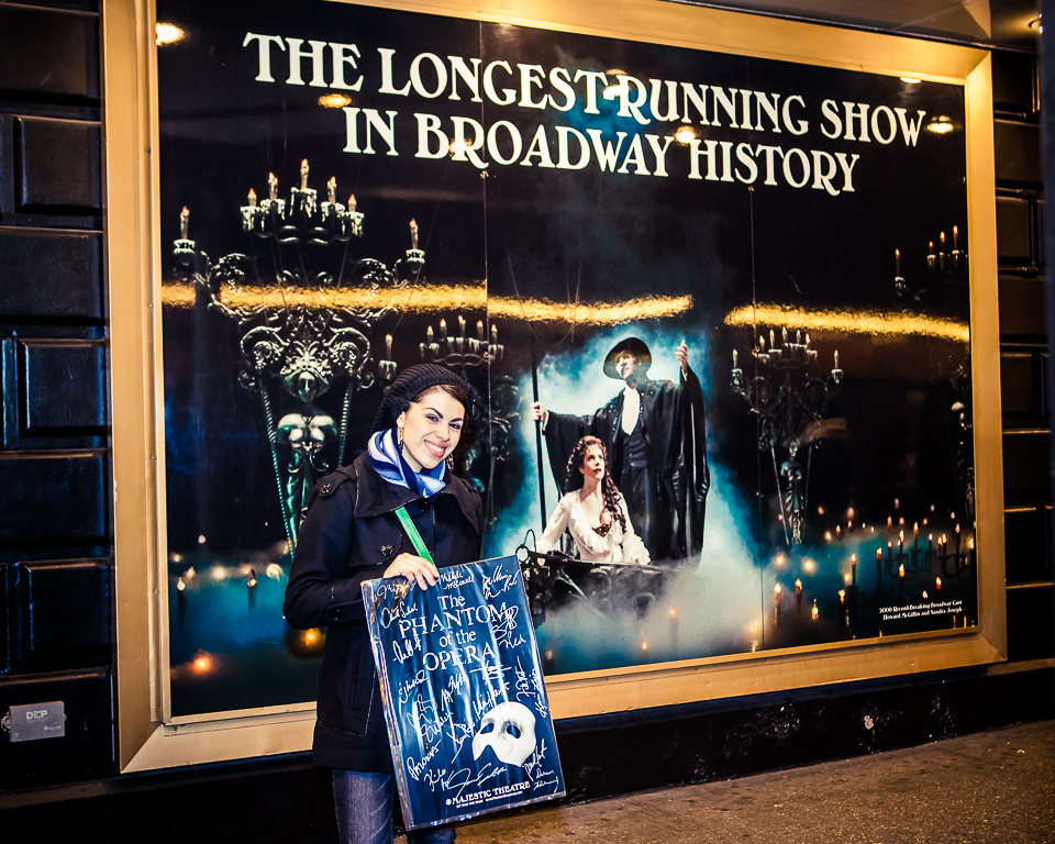 Jenny stayed in line while I went to grab some food for us. Later, we found out that we didn’t need to stand in line, as our tickets were already purchased. This was my first Broadway show, and Jenny’s first as well (and highly anticipated too). The show was amazing! If you’ve never been, it’s definitely worth it. It had been Jenny’s dream to see The Phantom of the Opera live.