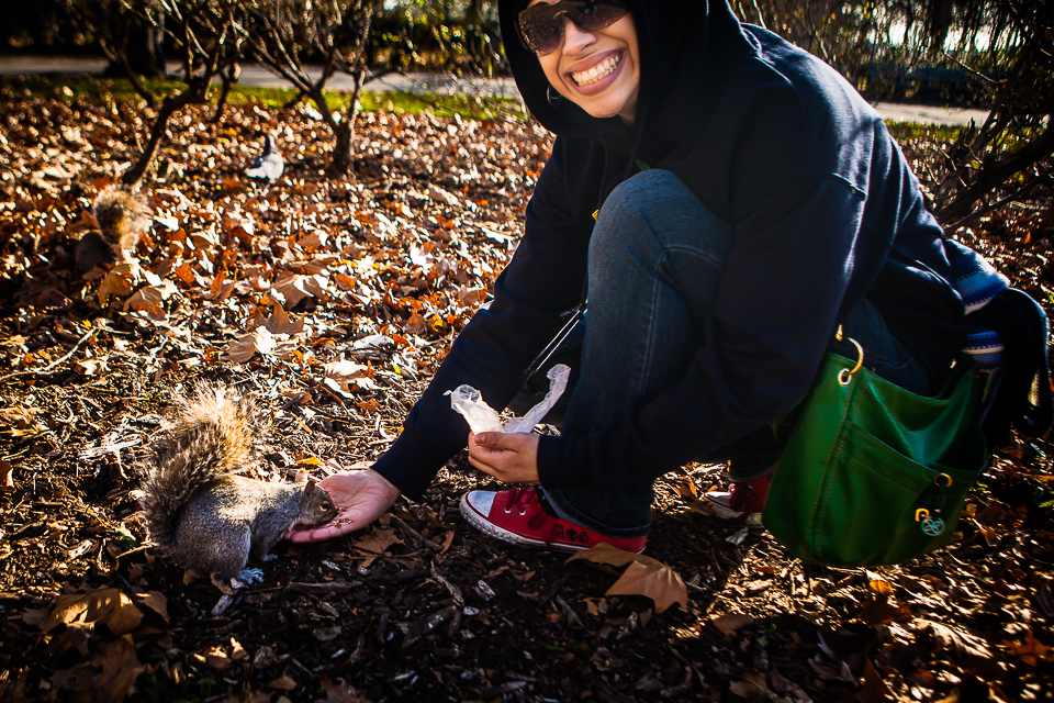 Jenny was approached by a few beggars (squirrels) in Battery Park. We had picked up some roasted nuts after getting off of the boat, and still had a few left. It’s interesting that in a concrete jungle full of man-made structures, we’re still more impressed by the critters.